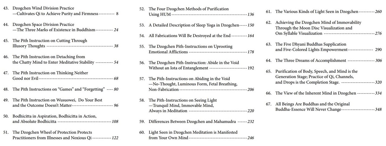 “The teachings of Great Perfection are the pinnacle of Tantrayana teaching, just as Mount Everest or Shengmu Feng in the Himalayas is the highest summit in this world. The ultimate fruition of Great Perfection Dharma is the rainbow body phenomenon. Padmasambhava transformed his body into a rainbow and vanished into empty space. In our school, we have the third highest achievement in Master Lianhua Yimin whose cremated body left behind a multitude of sariras. The second highest achievement is the body transforming into rainbow light, with clothing, hair, fingernails and toenails left behind. That is why Great Perfection teachings are the highest teachings.”