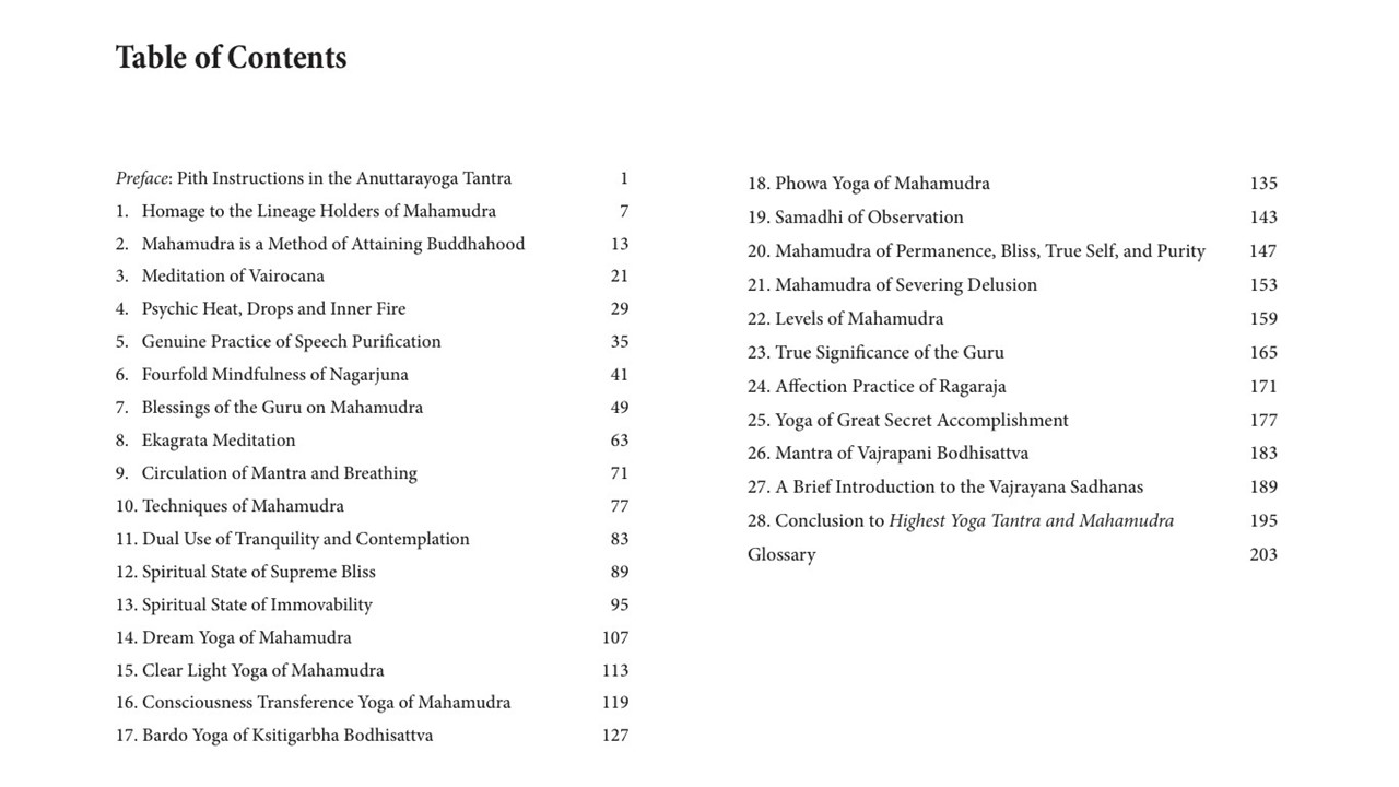 The teachings of the Highest Yoga Tantra and Mahamudra will soon be published, and the darkness that shrouds the world will disappear at once. Buddhas and bodhisattvas have fulfilled our wishes by reaching out their compassionate hands. The most valuable Tantric teachings, which are all-encompassing and perfect, will soon be presented to all sentient beings. Followers of the different traditions of Vajrayana Buddhism and those with the proper dharma affinities to read this book, shall be blessed by the guru and attain great spiritual power. This book will connect all sentient beings of the ten directions, allowing them equally to achieve spiritual accomplishments.
