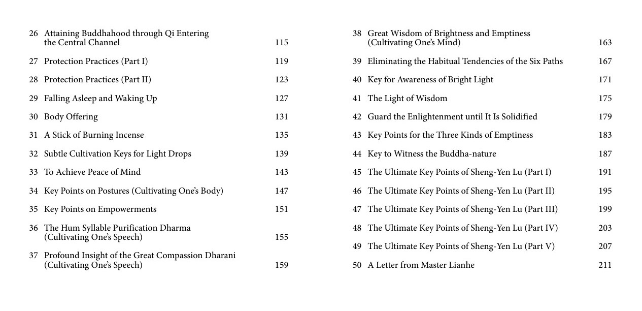 The Buddhist teachings are vast, and there are various schools. Each school and sect have their own respective practices. In Vajrayana Buddhism, the Great Perfection, Mahamudra, Yamantaka, and the Great Perfection Profound Wisdom are four great dharmas that I have practiced for forty years.