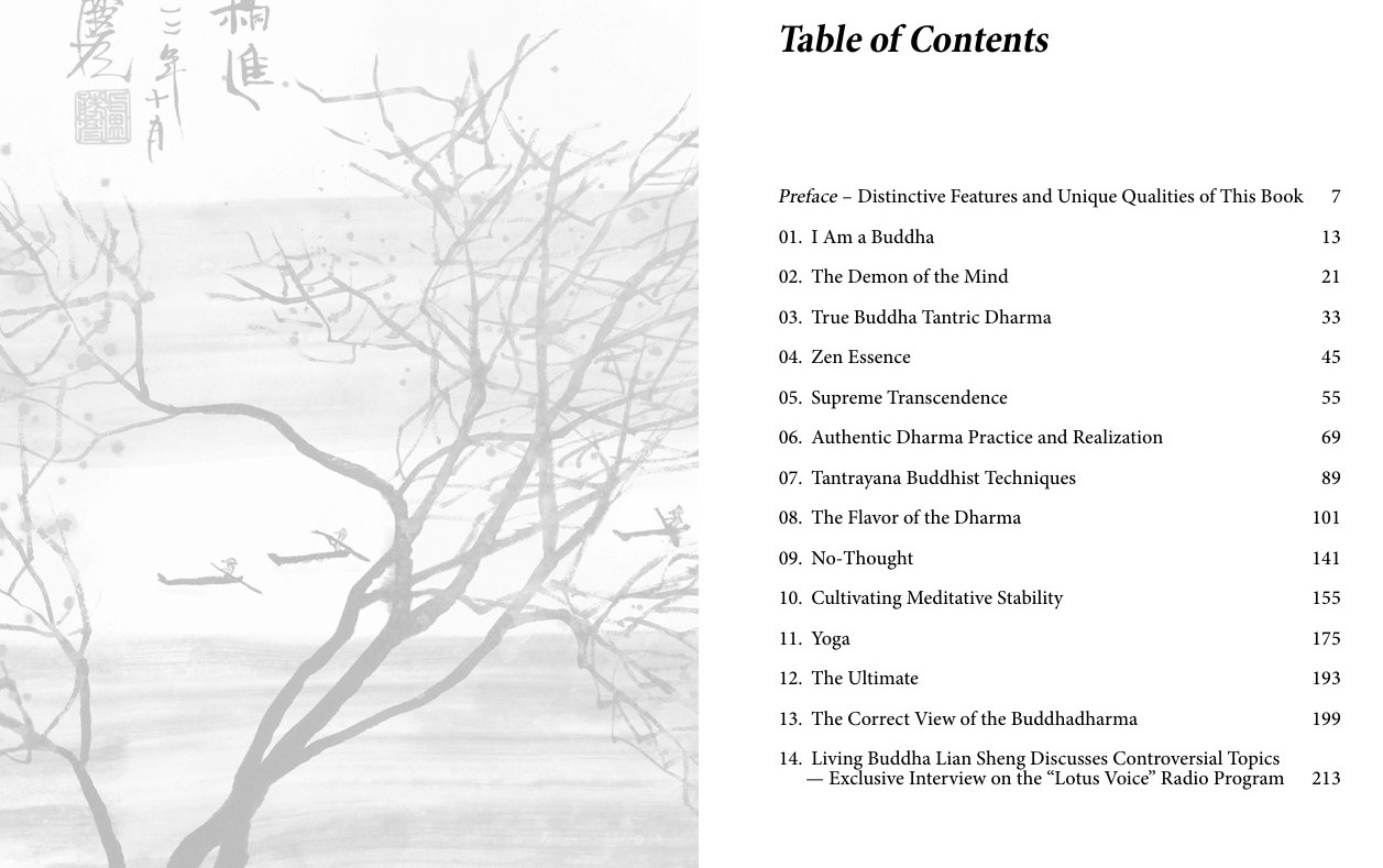 “Living Buddha Lian Sheng, you are a great spiritual adeptand have authored more than a hundred books. It is difficult to grasp the fullessence of a Grand Master of your generation. If a beginner wishes to understand your distinctive and unique qualities, which book should they read?”